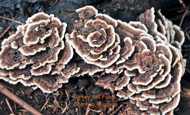 Update-- I found a better picture of turkey tail fungi from my Virginia garden. Can you see how it got its name?
