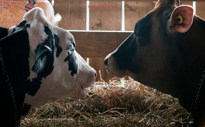 Since my last post was about parrot talk, I will ponder the idea of cows talking. The picture above was taken by me long ago at an agricultural fair in Maryland. It looks here like the cow is talking to its companion. It reminds me of commercials, I used to see on TV, advertising cheese. In these commercials cows were talking to each other. I always liked these commercials because I thought they were funny and unique.