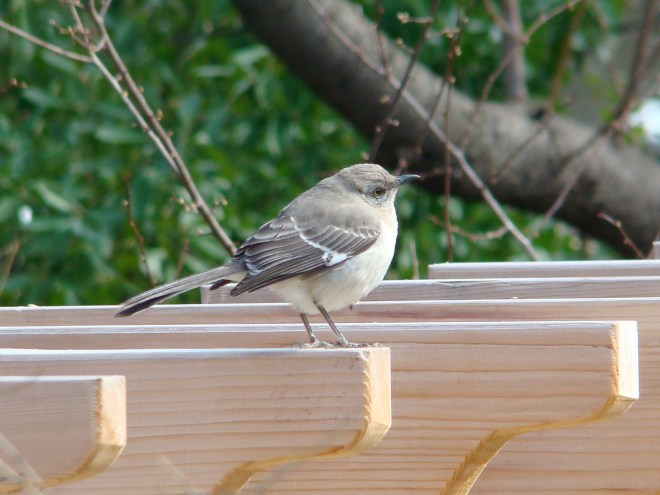 Here is a young mockingbird that used to make my garden its home. Mockingbirds have striking yellow eyes. This one used to trick me outside my bedroom window by mimicking my alarm clock. It was also talented at mimicking a cat's meow. I named it my Sterlingbird and took this username as my own on an online garden message board. This particular bird is long gone from my garden, and I no longer have this username. However, I remember the inspiration it gifted me.