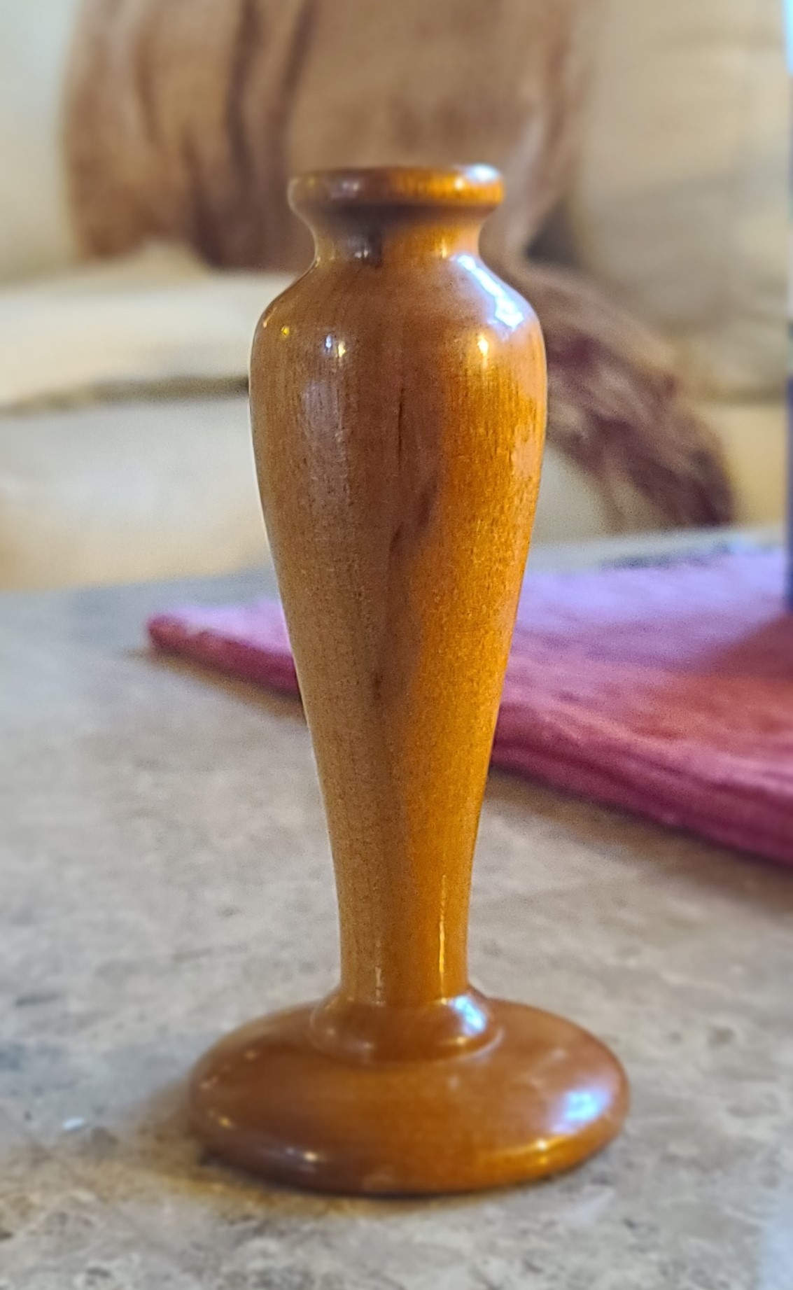 The vase is most likely made from Oregon Myrtlewood. The Latin name of this particular tree is Umbellularia californica, and its common names are Bay Laurel, Pepperwood, or Oregon Myrtlewood.