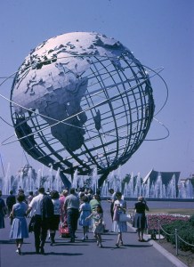 Here is another slide taken by my father, W. Keith Hartell at the New York World’s Fair. The large bronze statue is called the Rocket Thrower, and you can see the Unisphere in the background under the aerial tramway.