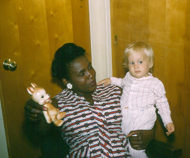 I was told she tried to cornrow my thin white blond hair that stood straight up like static was hovering over my head. She was unsuccessful in her attempts, though my hair did eventually settle down like in this picture.